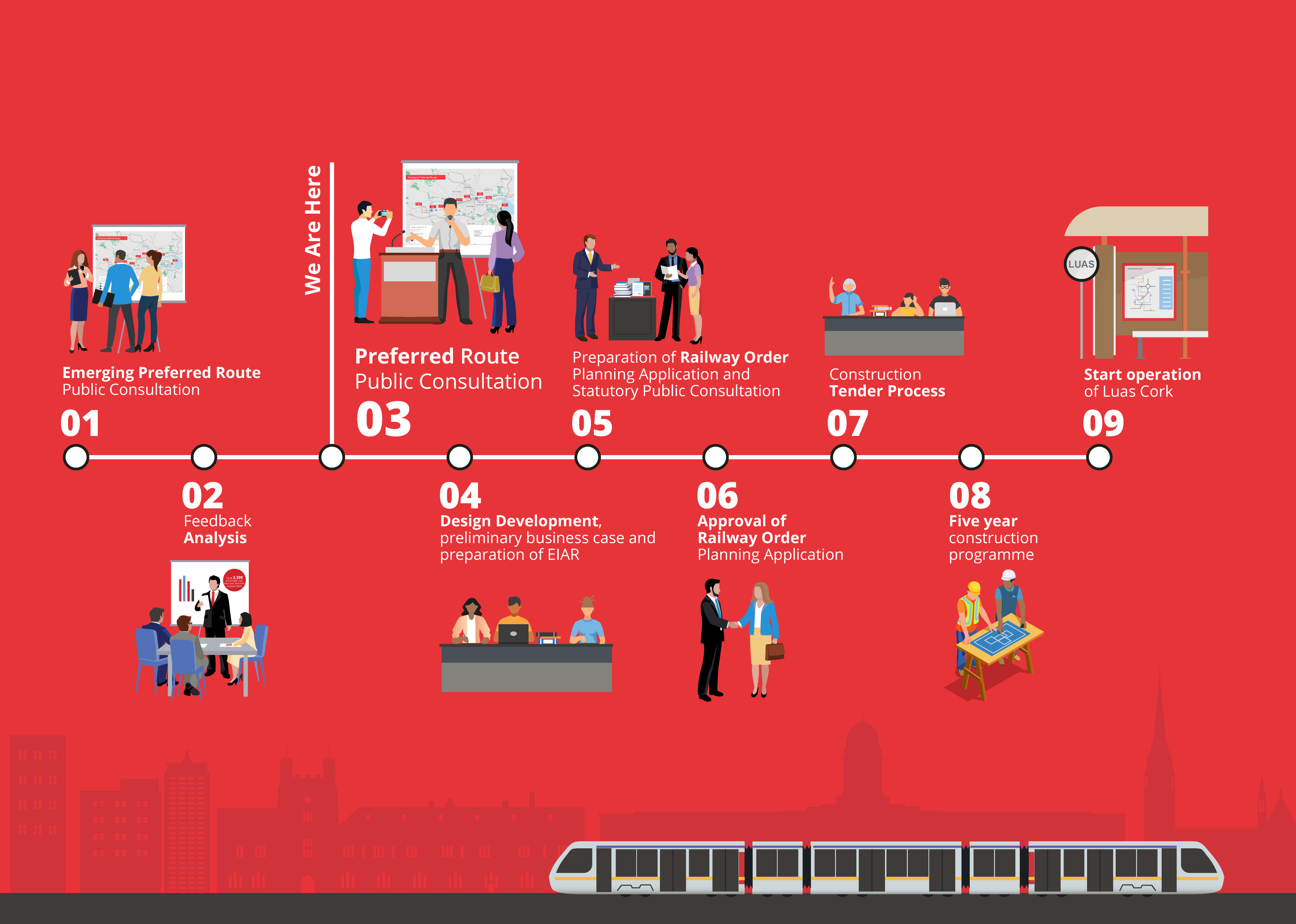 Delivering public infrastructure like Luas Cork will raise issues for those directly affected. We are committed to a meaningful and ongoing process of consultation and engagement with everyone affected by this proposal. Your feedback will help us better understand some of the issues and challenges we face.