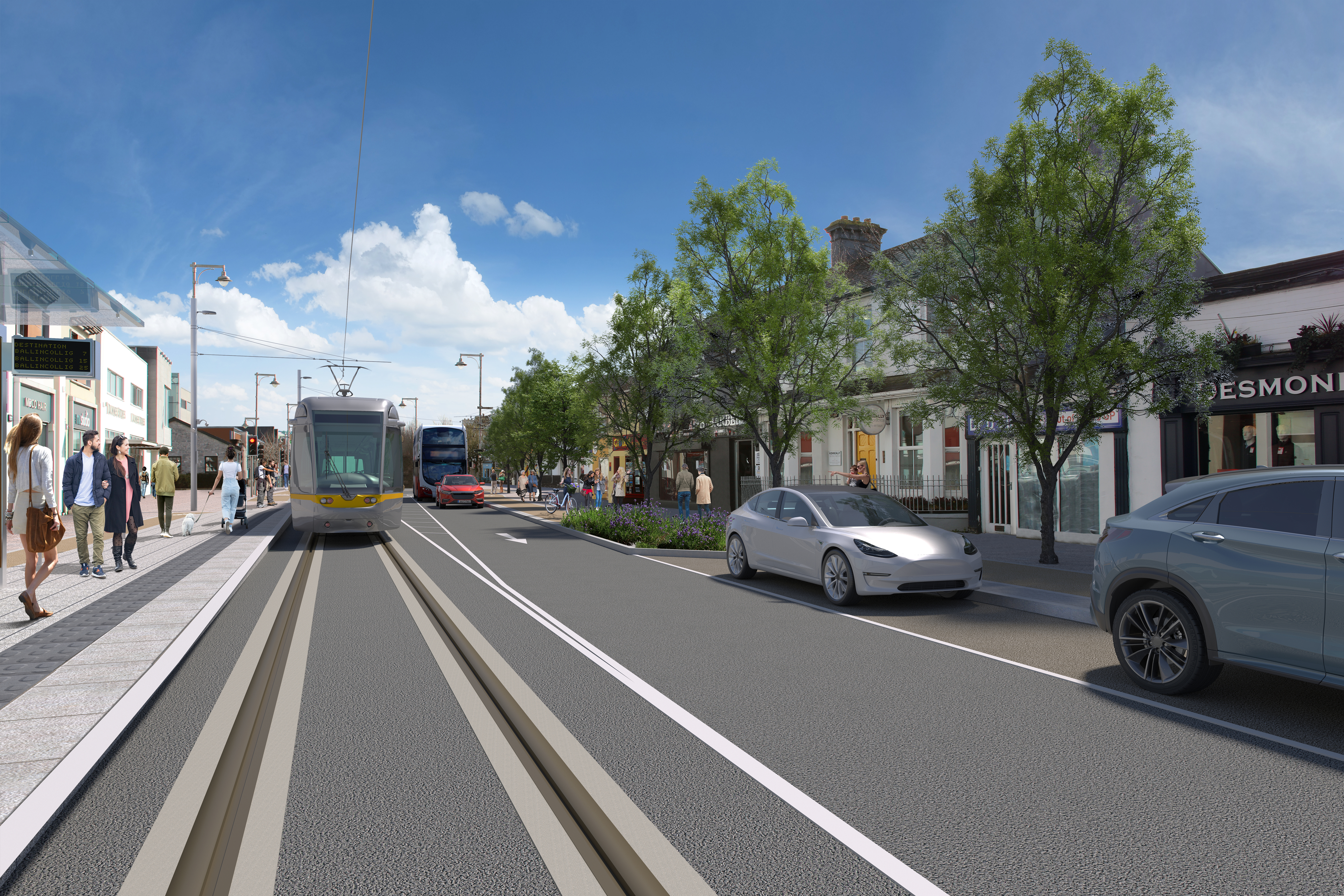 The tram is largely segregated from general traffic through Ballincollig, but shares with southbound traffic on Station Road. Beech Park/Barley Grove will be accessible to general traffic from Main Street and from Carriganarra Road but there will be no northbound through-traffic. Some diversion of traffic onto Old Fort Road will help reduce traffic congestion in the village.