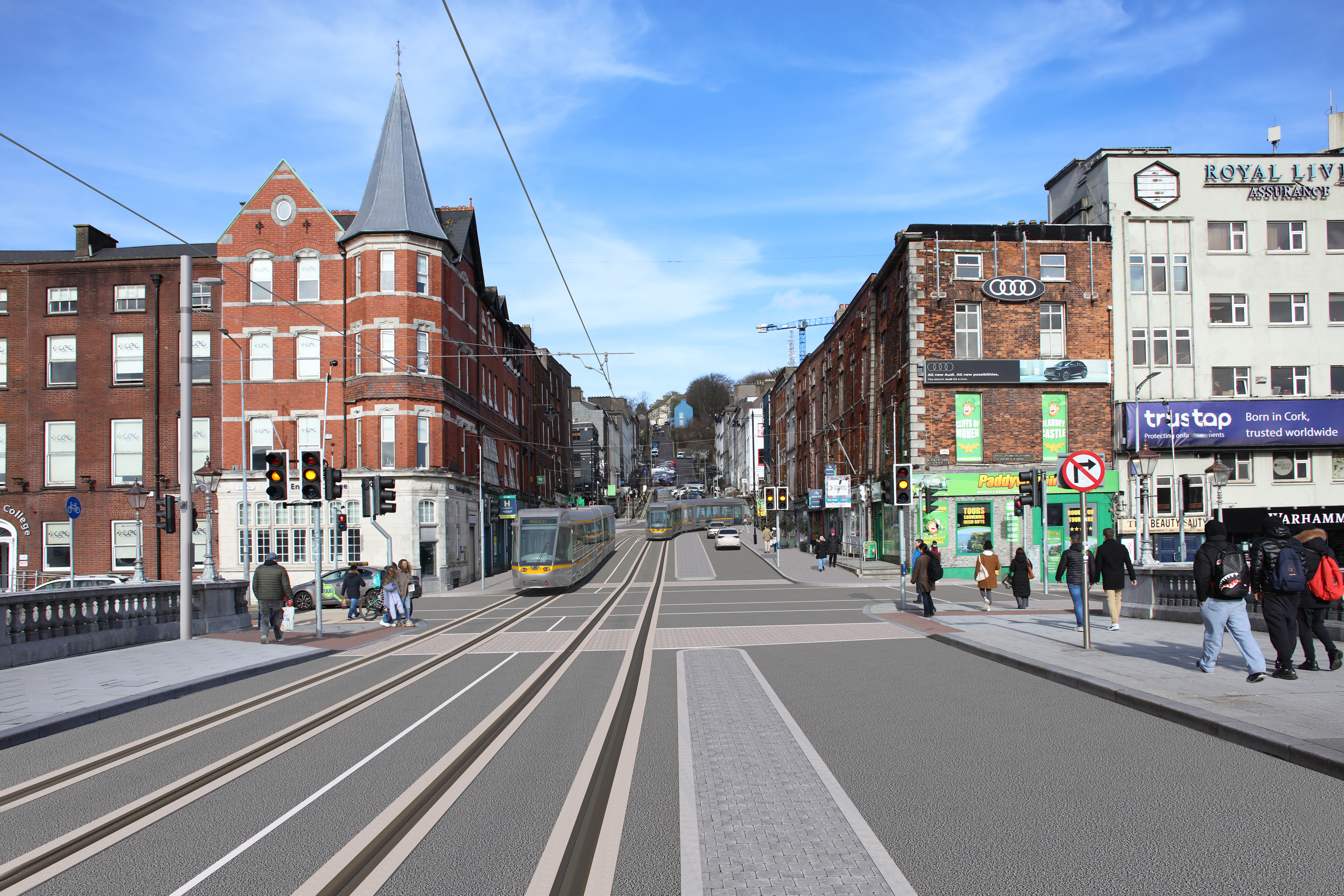 As with other streets along the route, St Patrick’s Street and MacCurtain Street will require works to accommodate the new Luas tracks including utility diversions and modifications to kerb lines and footpaths.