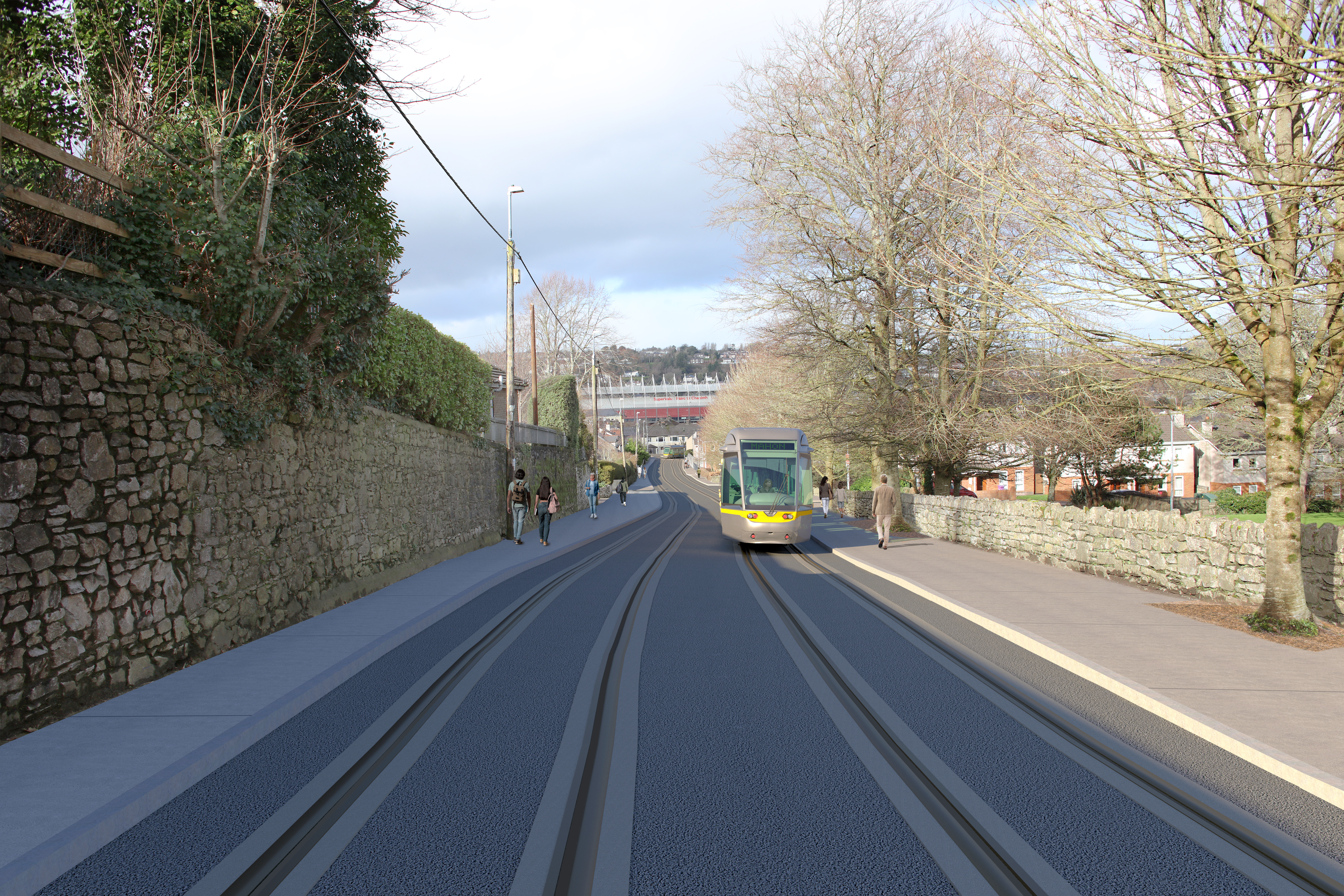 At the junction with Leo Murphy Road and Killumney Road, the tram reverts to a normal double-track arrangement eastwards towards the city centre while the single track arrangement returns westwards towards Station Road. Some land-take and car-parking removal will be required to deliver the scheme.