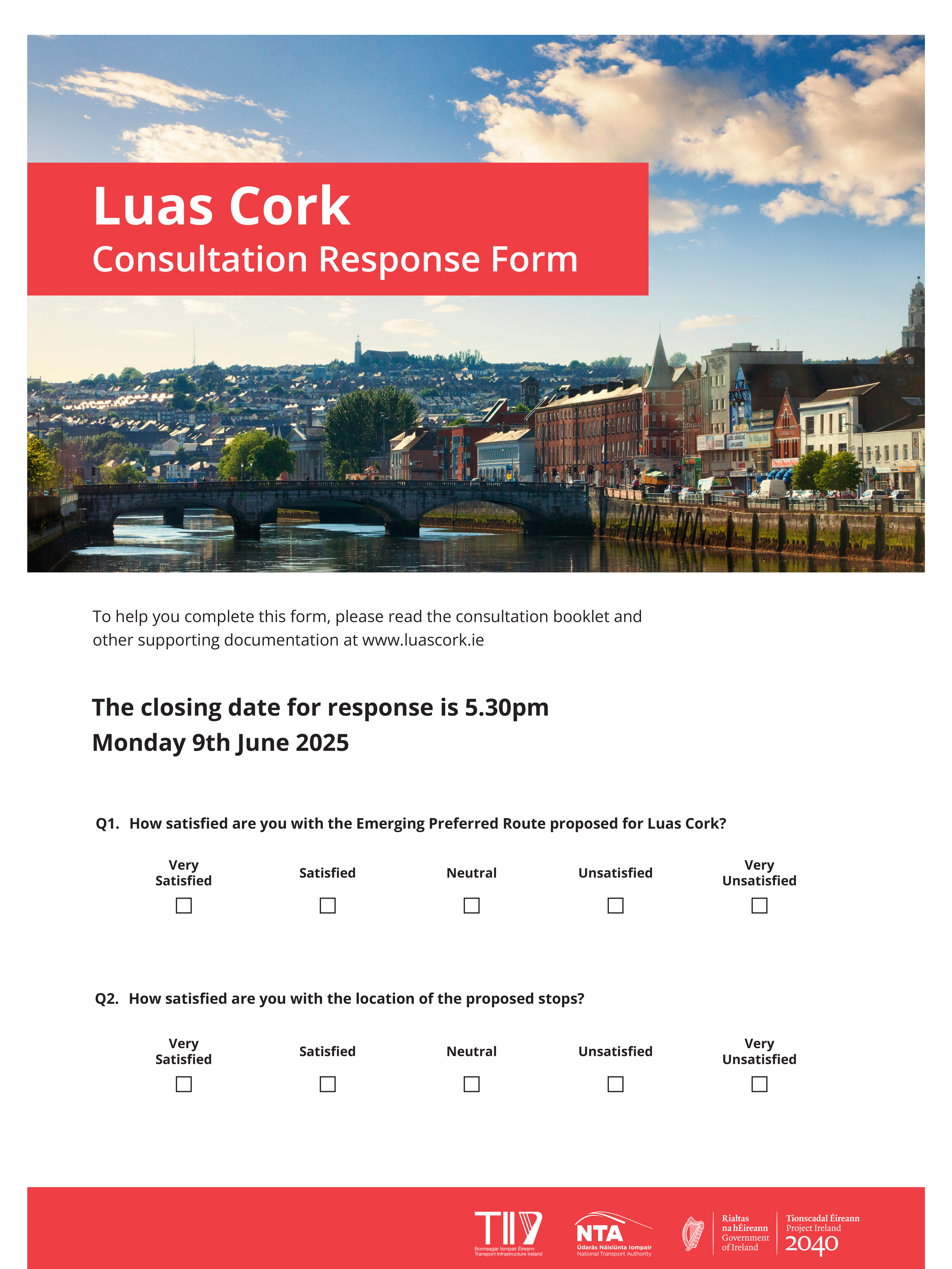 Fáilte chuig an gcomhairliúchán poiblí neamhreachtúil seo maidir leis an mBealach is Dealraithí a Roghnófar (EPR) le haghaidh Luas Chorcaí.